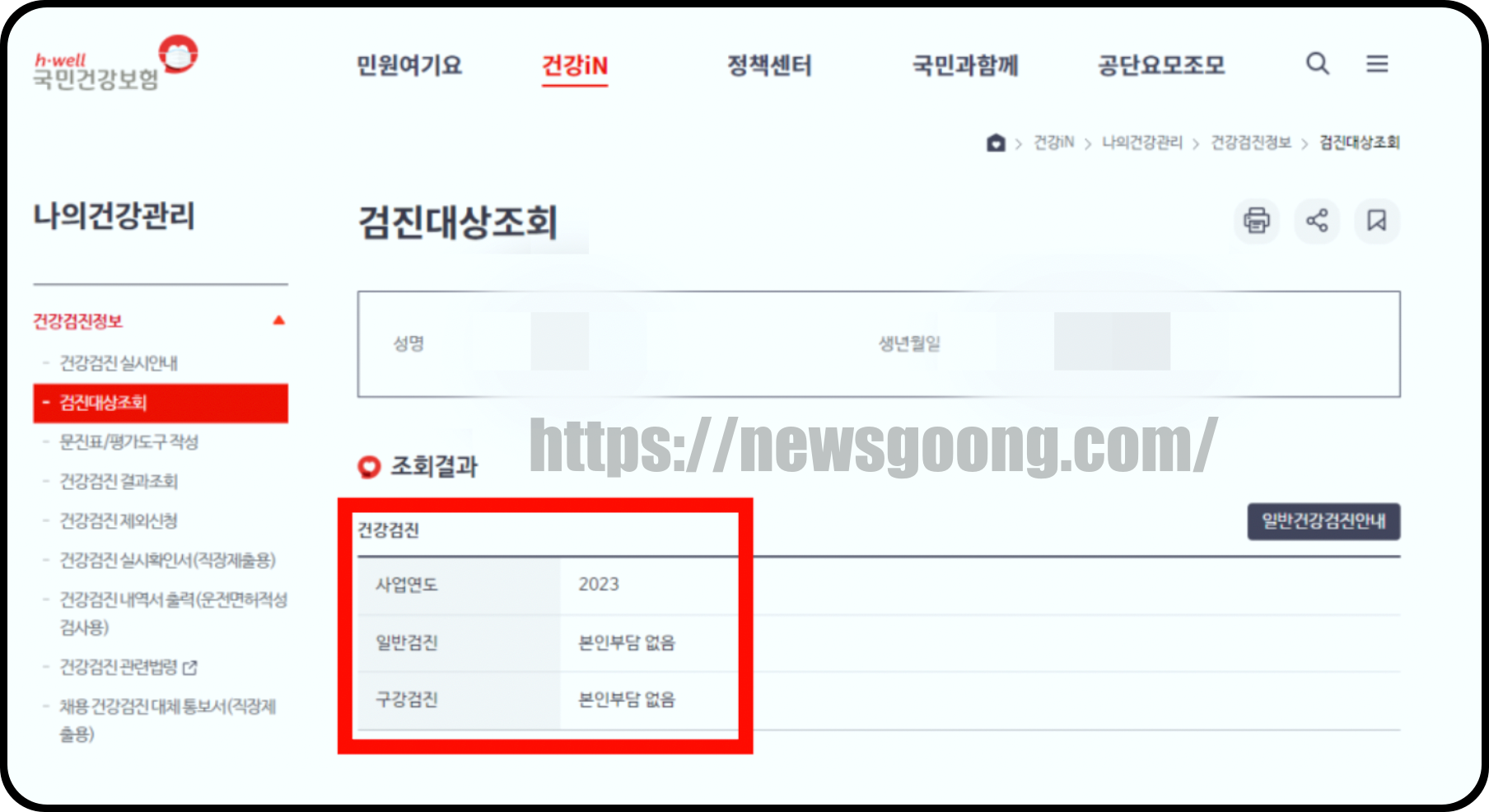 건강검진 대상자 조회 방법